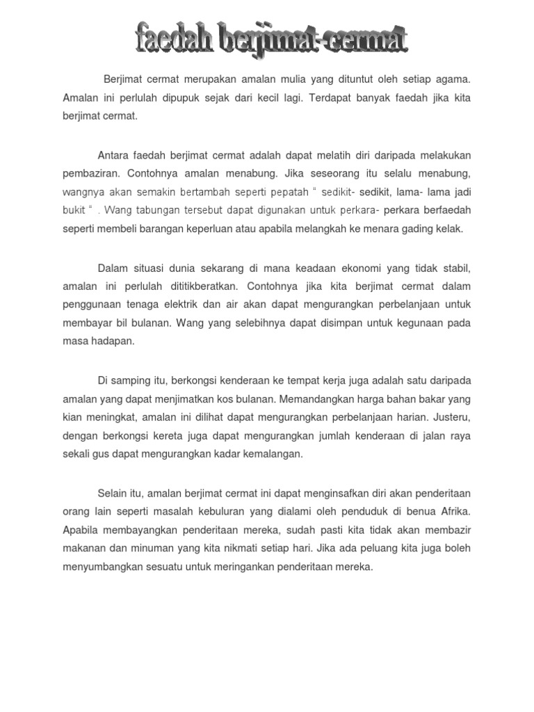 Sikap berjimat cermat amat digalakkan oleh kerajaan. Stres dan tekanan langkah untuk mengatasi contoh karangan. Suatu karangan ringkas tentang faedah berjimat cermat by batrisya in types.